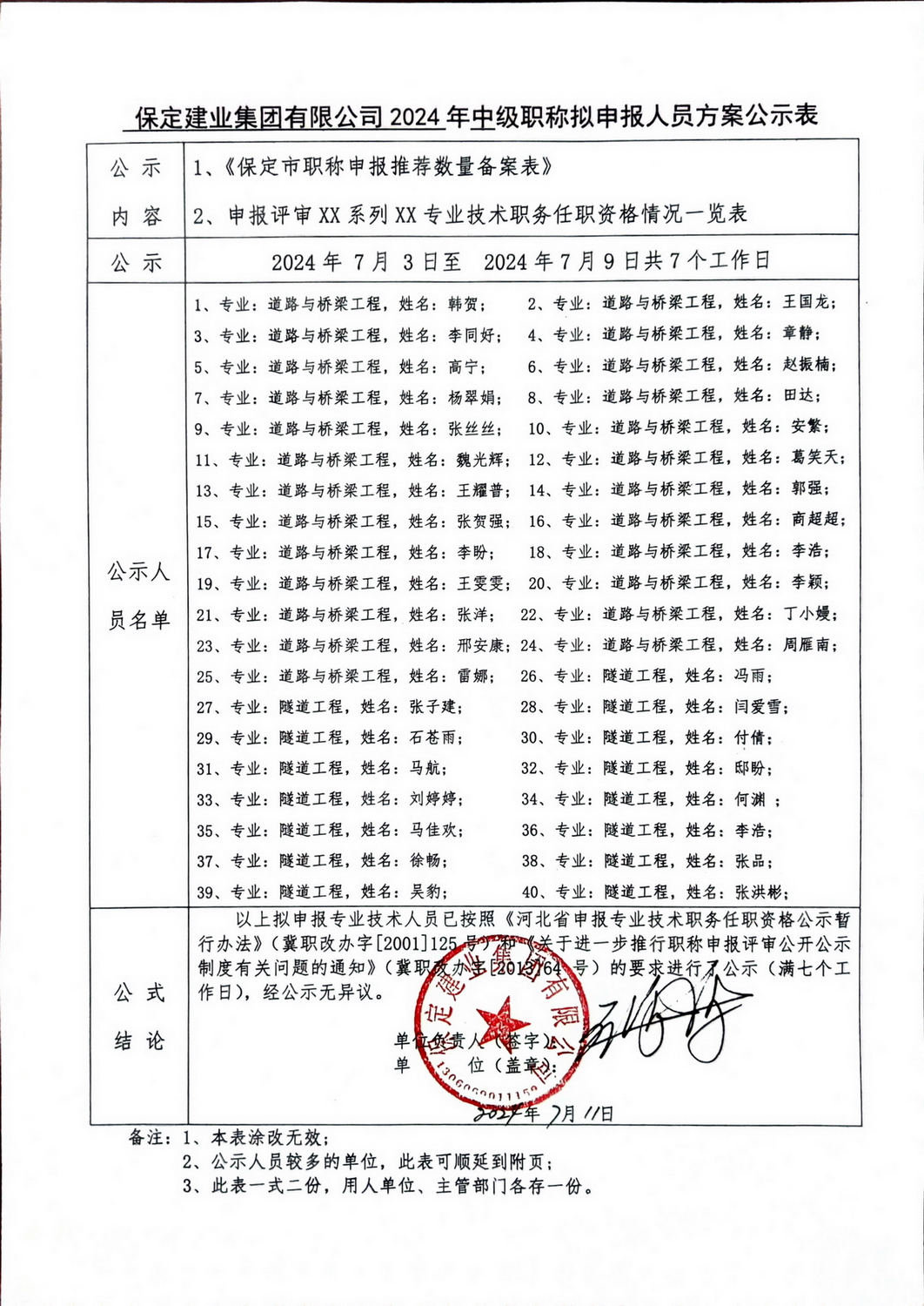 2024年中級(jí)職稱擬申報(bào)人員方案公示-道路系列