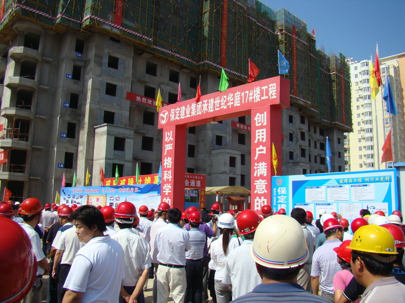 2010年7月20日,由市建設(shè)局安監(jiān)站在華北電力大學(xué)會議室組織召開了建設(shè)系統(tǒng)安全文明施工現(xiàn)場會。會議有省、市安監(jiān)站領(lǐng)導(dǎo),市、縣、區(qū)建設(shè)局、安監(jiān)站主要領(lǐng)導(dǎo),全市及駐保主要建筑施工企業(yè)負責(zé)人參加。集團六公司世紀(jì)華庭17號樓項目部被選為與會人員參觀的樣板項目部。